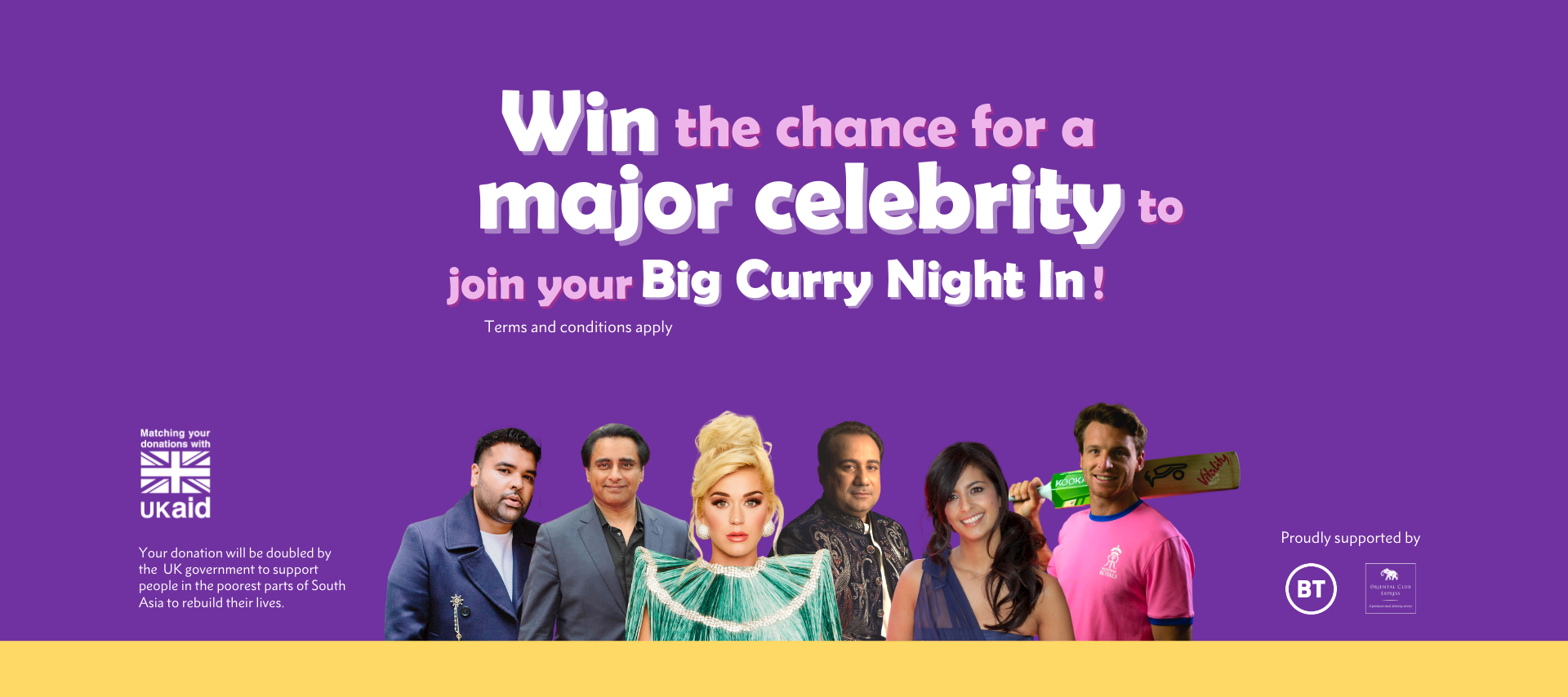 For the first time, British Asian Trust Ambassadors will be offering a chance for participants to win a special opportunity to virtually join their Big Curry Night In. International pop star Katy Perry, British actor Sanjeev Bhaskar, presenter Konnie Huq, chart-topping British musician Naughty Boy, England cricketer Jos Buttler and Pakistani music maestro Rahat Fateh Ali Khan will join lucky participants virtually for their Big Curry Night In.